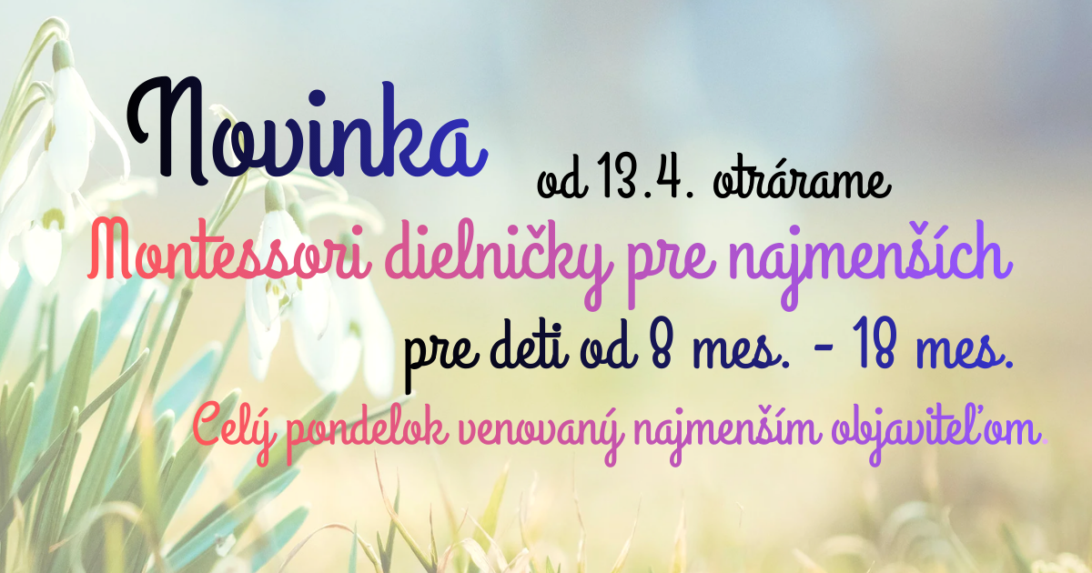Dieťa prirodzene túži po učení a raste. Ak mu vytvoríme podmienky, kde môže tieto túžby naplniť v pravý čas, darujeme mu najcennejší dar – vnútornú slobodu a pokoj, teda šťastie. Práve táto myšlienka ma inšpirovala k vytvoreniu takéhoto prostredia.